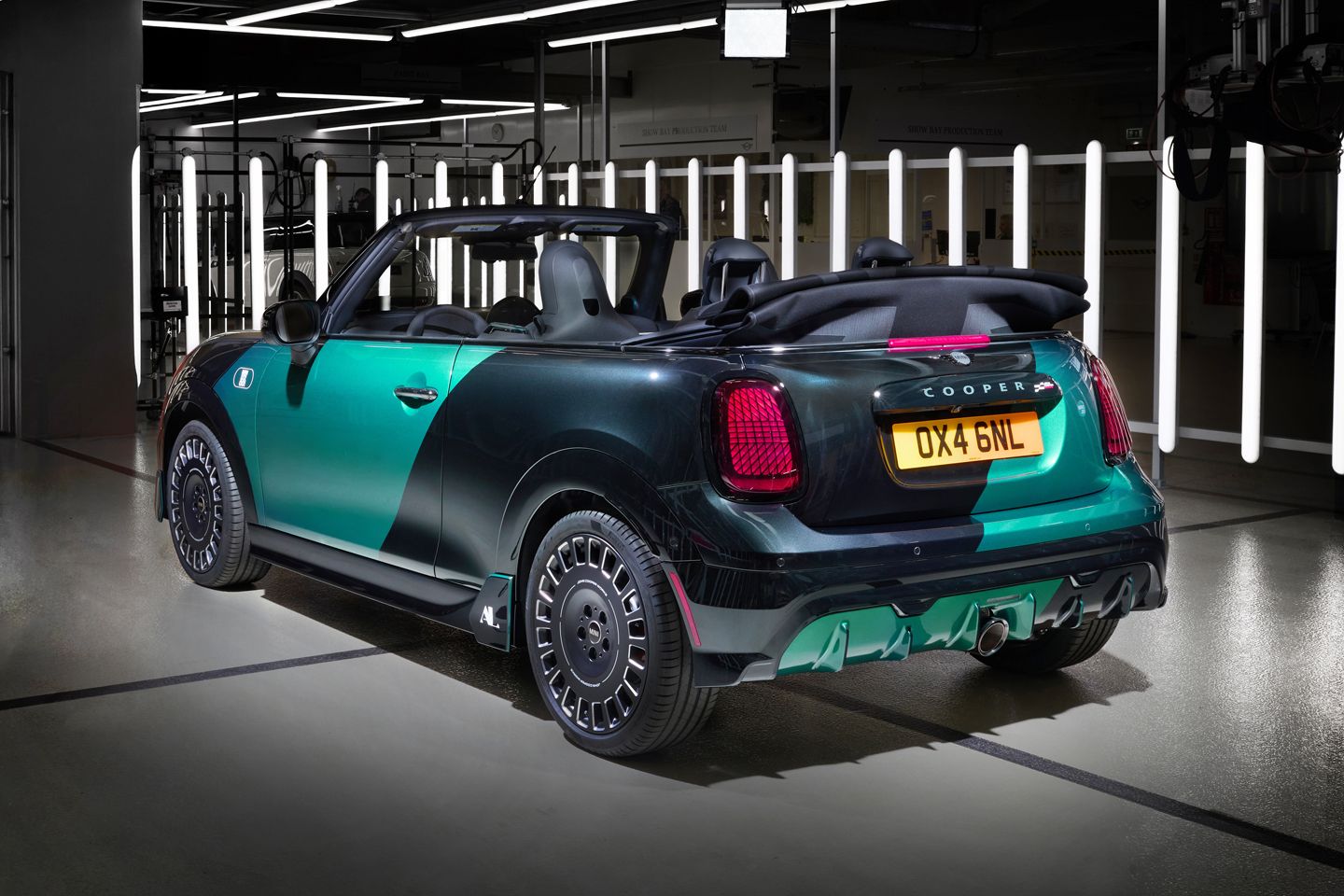 Some journey when you consider that ‘every interior element was prototyped and installed by hand at Plant Oxford’. This is because the green colourway (apparently a nod to the owner’s favourite NFL team) extends to more than 50 individual details, including a metallic, green-trimmed Harman Kardon speaker surround, custom armrest overlays, a MINI.01 steering wheel badge, personalised floor mats and even instrument cluster identifiers.