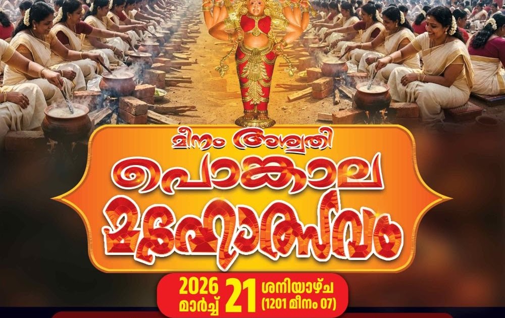 The sacred Meena Amrithi Pongala Mahotsavam 2026 will be celebrated with devotion at Major Valiyakulangara Devi Temple, a revered temple administered by the Travancore Devaswom Board.