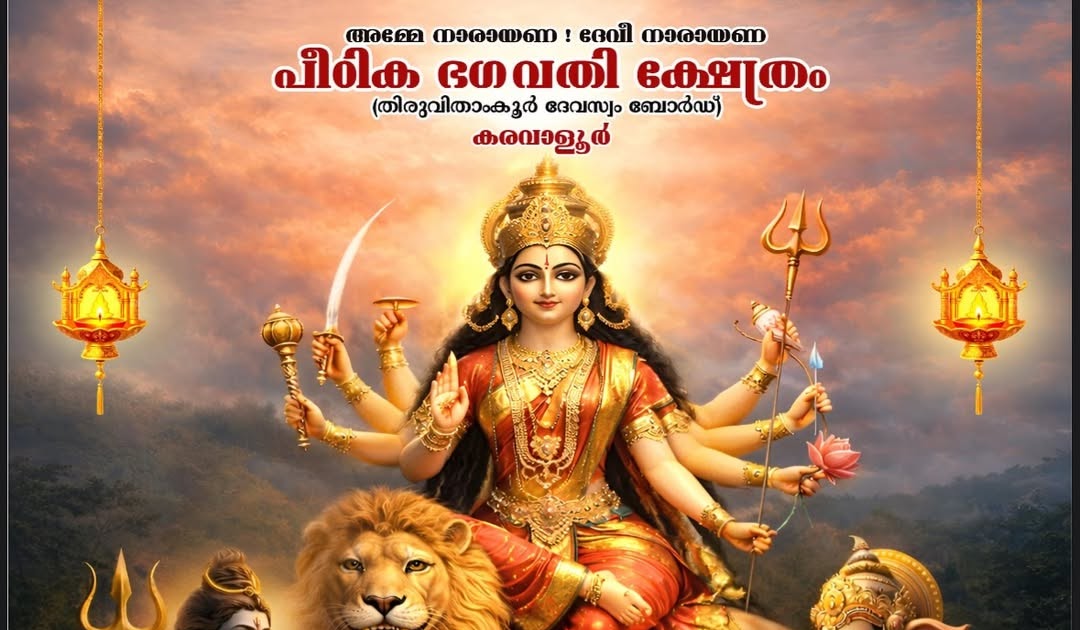 The annual temple festival of Karavaloor Amma will be held from March 20 to March 26, 2026 (Malayalam Calendar: Meenam 6 to Meenam 12, 1201). The celebrations will include traditional temple rituals, cultural performances, devotional music, and visual–musical programs.