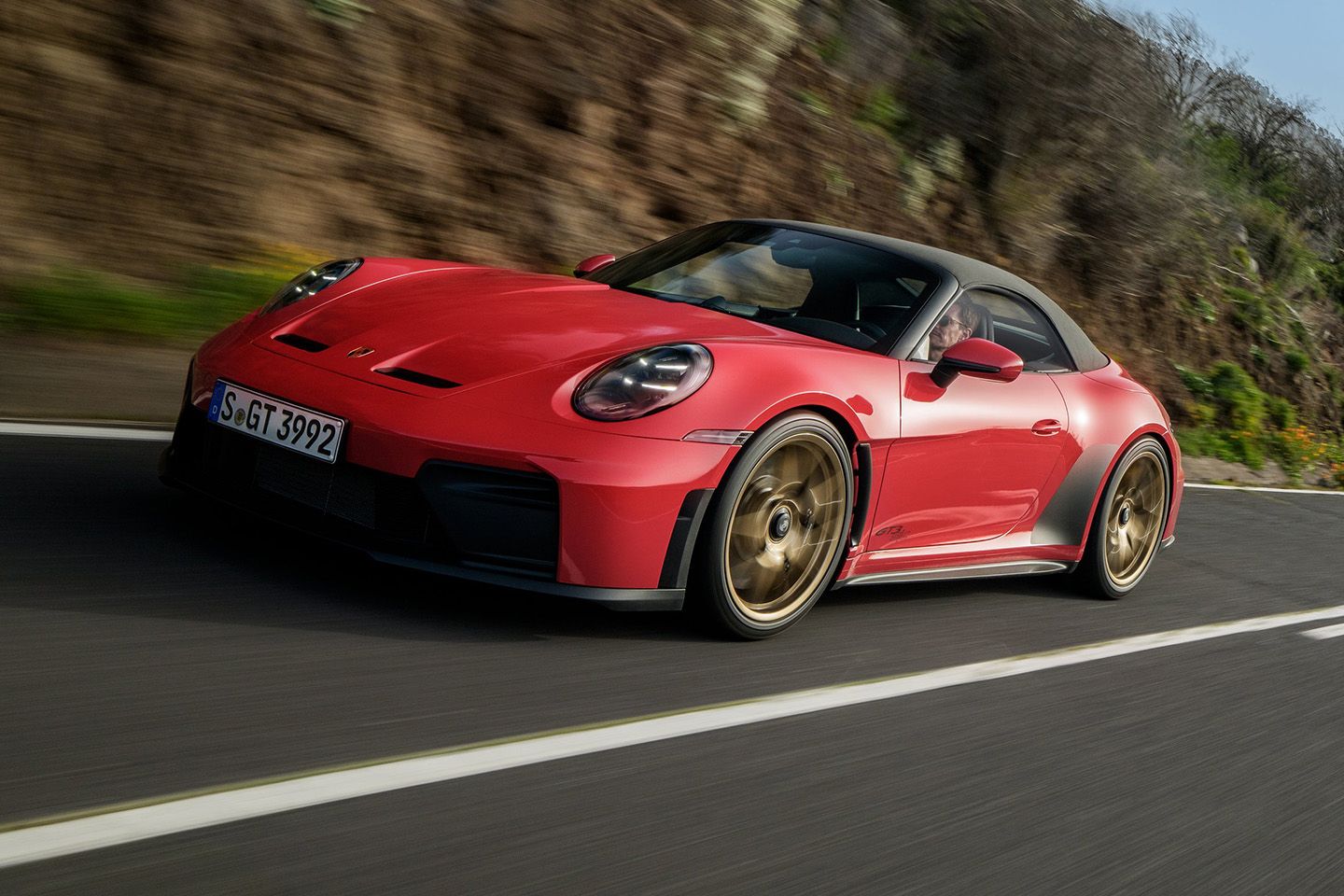 Nope, it’s not a 911 Speedster, but rather a GT3 Cabriolet with a proper automated folding roof. Porsche GT boss Andreas Preuninger claims that Speedster and Spyder buyers have been asking for a drop-top GT3 where they don’t need to physically fasten a fabric roof once the heavens open. He also revealed that the GT3 Cabrio idea has been on the table since the 997, though it took a recent gap in its carbon fibre supplier’s production line for it to become a reality. That, and the fact that Porsche had 911 Cabriolet and GT3 prototypes lying around gathering dust, so Preuninger and the gang set about transferring all the track-focused hardware to the drop-top, with the end result convincing them to press on with the S/C.