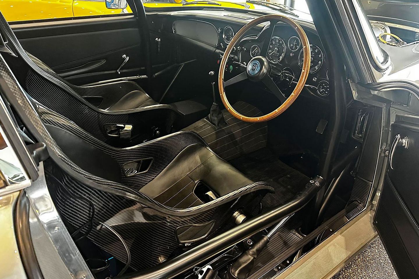Yet despite being opened up to public highway use, this GT still only covered 261 miles. Clearly it’s going to be pretty hard work, without power steering and with harnesses, but talk about an event on every kind of road. Every detail, from the hand-painted cut-off sign to the wood-rimmed wheel, is absolutely perfect. The short wheelbase and motorsport addenda of a GT lend it an attitude missing from a regular DB4.