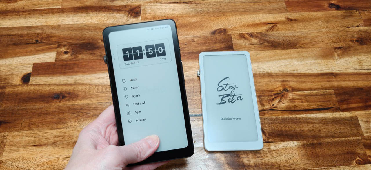 ARTICLE – Somewhere between the Kindle and the smartphone sits a category of devices that promise the best of both worlds: e-ink readability without notification distractions, plus the flexibility of Android apps when you need them. The DuRobo Krono plants itself firmly in that space, packaging a 6.13-inch e-ink display with a full Android operating system, a voice recorder, and an AI assistant into a pocketable form factor. At £239 (roughly $249), it’s priced like a premium e-reader but marketed as something more ambitious. The pitch sounds compelling until you actually use it. What follows is a story of good intentions undermined by rushed execution.