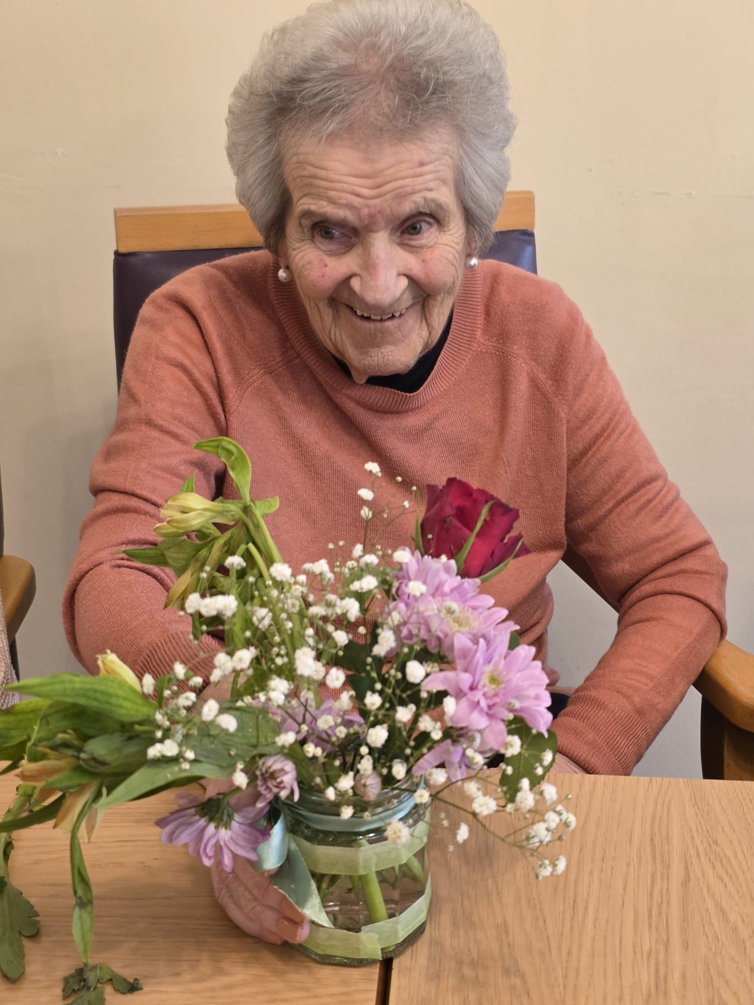 By the end of the session, the room was filled with beautiful arrangements, each one proudly displayed. Residents took great pleasure in admiring their work and that of others, with many choosing to place their creations in their rooms or communal spaces to brighten the home.