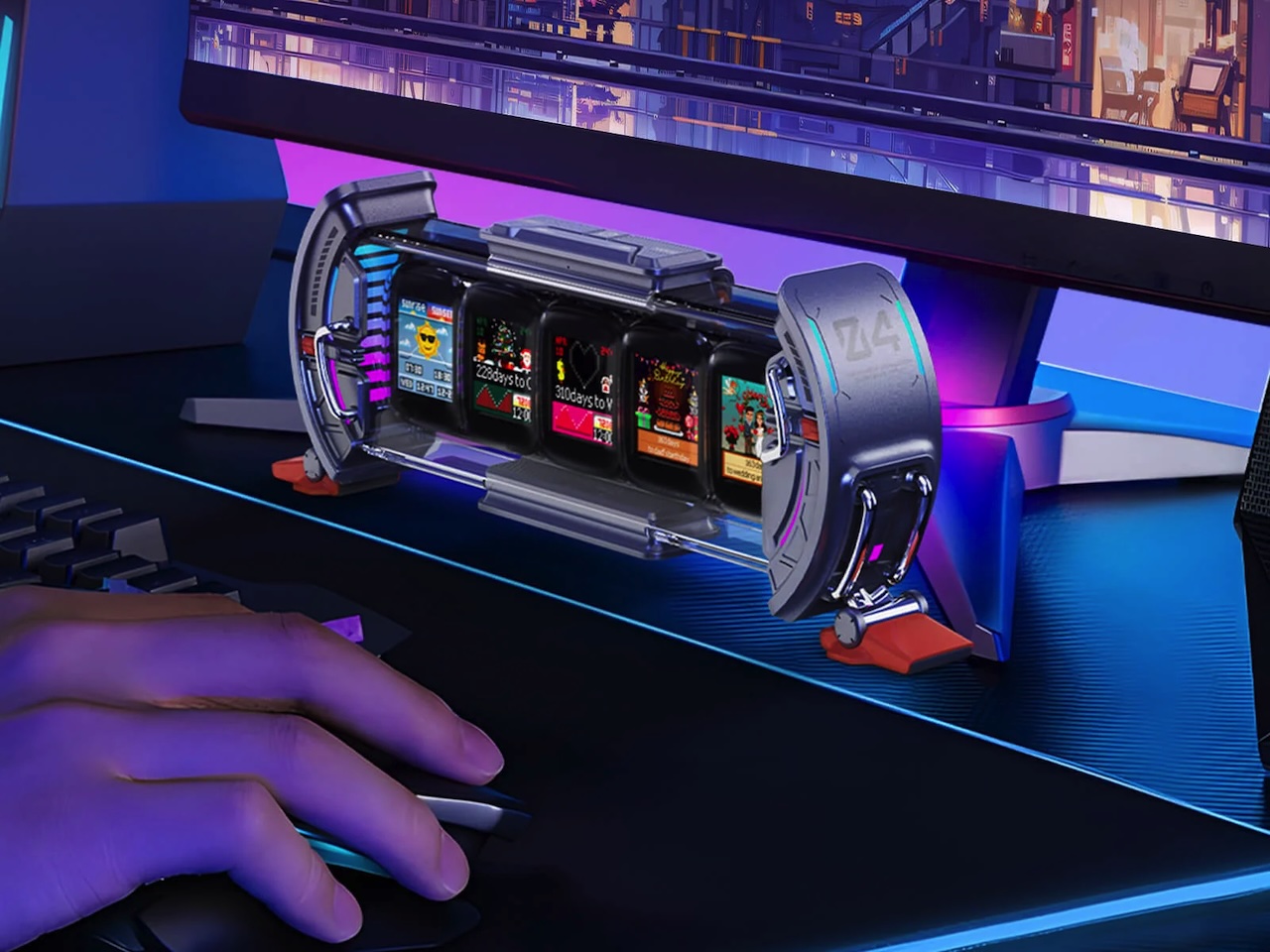 We’re always looking for fun pieces that make our work desks feel a little less like work desks, and Divoom keeps delivering. The Times Gate isn’t new, but it’s the kind of product that ages well. Most digital desk clocks tell time and call it a day. The Divoom Times Gate doesn’t care about that baseline. It’s built around five individual LCD screens, each running its own pixel art display, arranged more like a miniature mission control panel from a retro sci-fi set than anything you’d call a clock. The cyberpunk styling hits immediately, with hard angles and a look that belongs in a Blade Runner apartment rather than next to a pile of sticky notes.