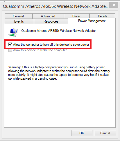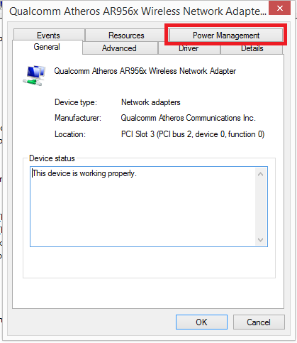 To fix this issue, you should first look for the power management tab on your bluetooth adapter and devices just in case that your adapter is not bundled. If you cannot find it, then go into Device Manager and open the Network Adapters tree and double click your wireless adapter (in my case its the Qualcomm adapter):